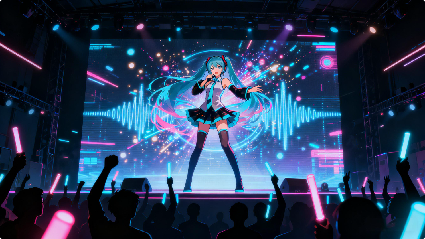虚拟偶像的成功标志着AI与娱乐产业的结合达到了一个新的高度。最著名的虚拟偶像之一便是日本的初音未来(Hatsune Miku),她是由Vocaloid语音合成软件生成的数字化歌手,并在全球范围内拥有数百万粉丝。通过语音合成与动画生成技术,初音未来不仅可以“演唱”人类创作的歌曲,还能在全球巡回演出,甚至通过虚拟现实(VR)技术与粉丝进行互动。