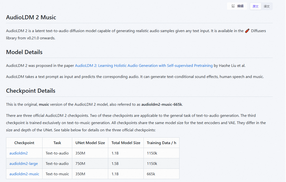 本节将以 ModelScope 网页版 运行 AudioLDM 模型为例。