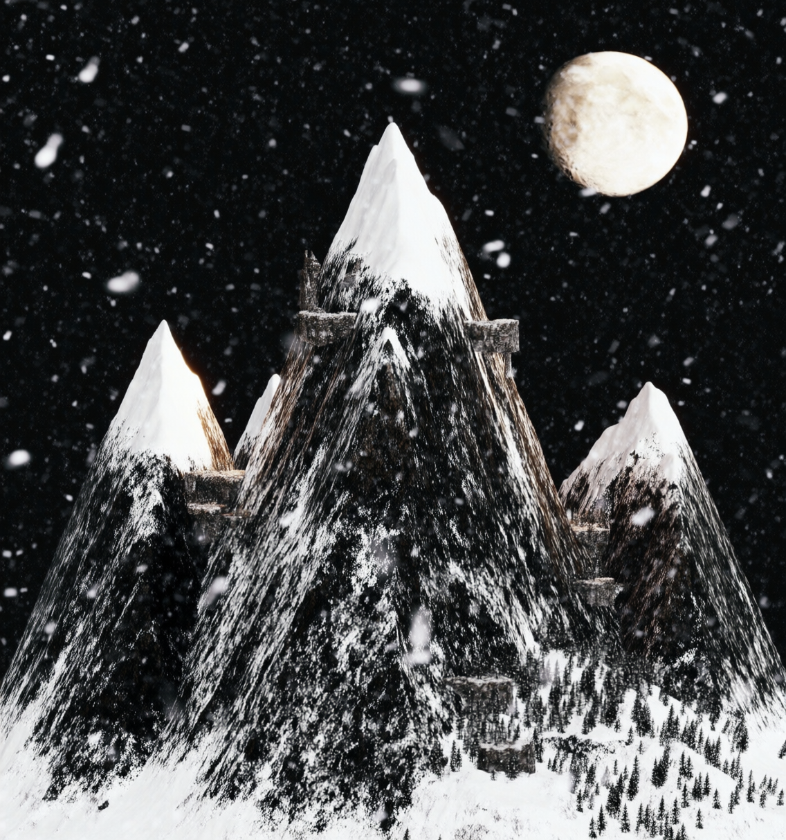 策划想表达: “这里是一座压抑的雪山,山顶有神秘的古塔,周围是枯树,氛围要史诗感。”