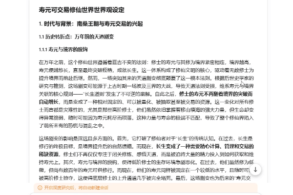 - 使用kimi k2的“深度研究”功能,它会给你一个很详细的世界观框架。因为非付费玩家只能使用一次,所以建议核心指令必须精准,一步到位。