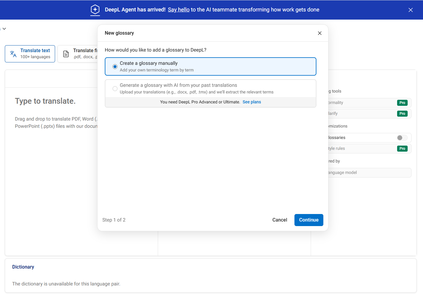 1. DeepL Translate texts(或免费版):用于初稿生成,核心在于其Glossary(术语表)功能。