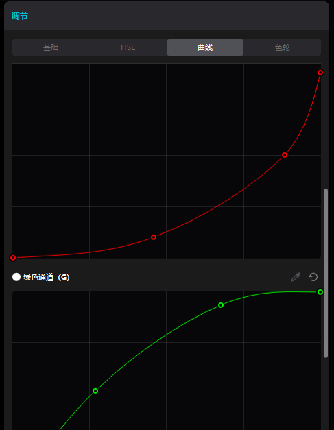 曲线: 稍微拉低红色曲线,拉高绿色曲线(暗部偏绿)。
