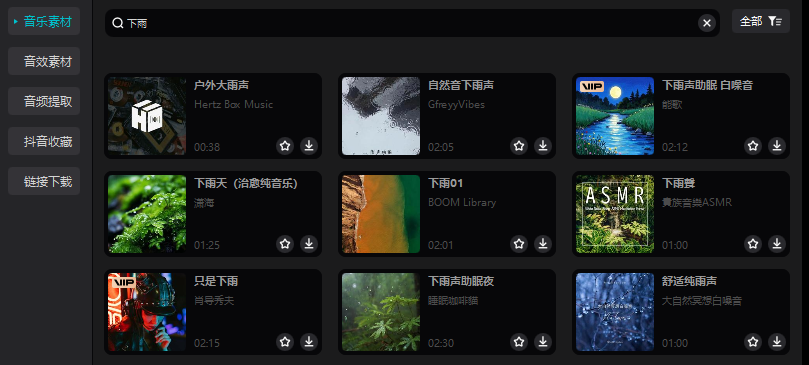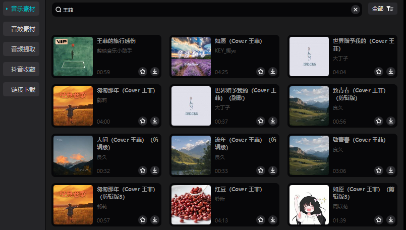 在剪映音频库搜索搜索王菲,特别是梦中人,很适合作为港风MV主题曲。