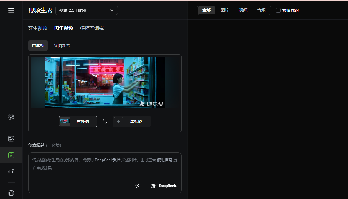 我们要的是精准控制,所以必须用「图生视频」,而不是「文生视频」。