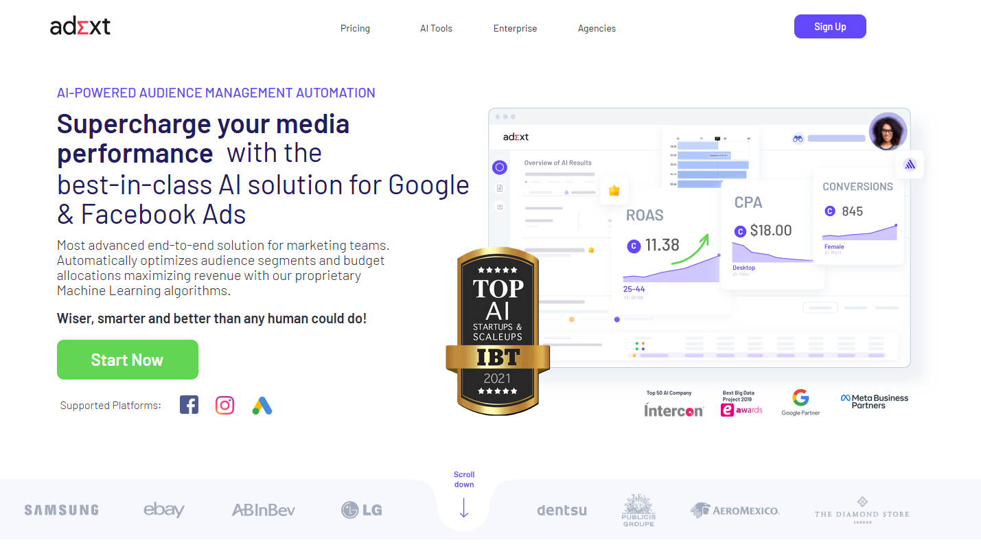 Adext AI是一款基于AI的广告优化工具,专门帮助广告主通过机器学习自动化广告投放和预算分配。它能够分析广告的表现,并根据实时数据优化广告内容、投放策略和预算,从而提高广告的ROI。