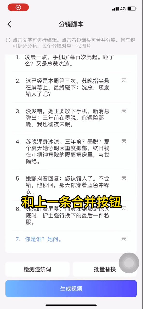 系统自动生成的脚本分镜需进行人工重新审查一遍: