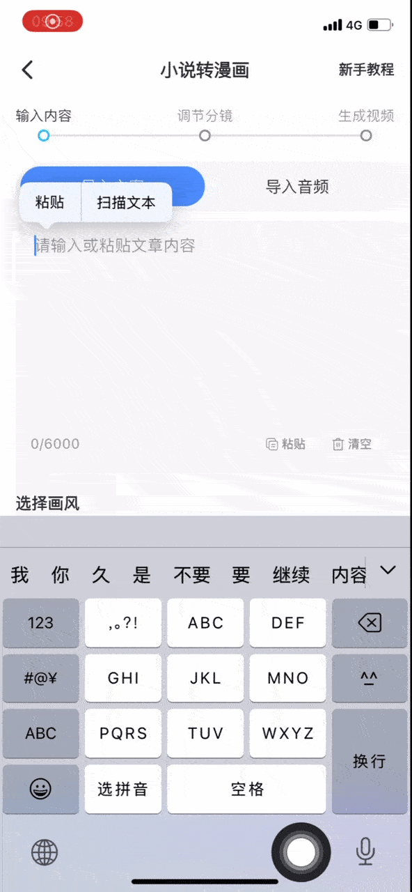 完成APP下载与账号注册后,在首页选择“小说转漫画”功能入口。此模块专为文字到视频的转化设计,是整个工作流的起点。