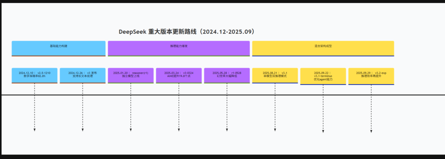 图 1:DeepSeek 2024-2025 版本迭代时间轴