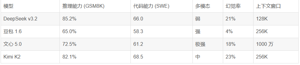 表 3:2025 年 11 月主流大模型核心能力对比
