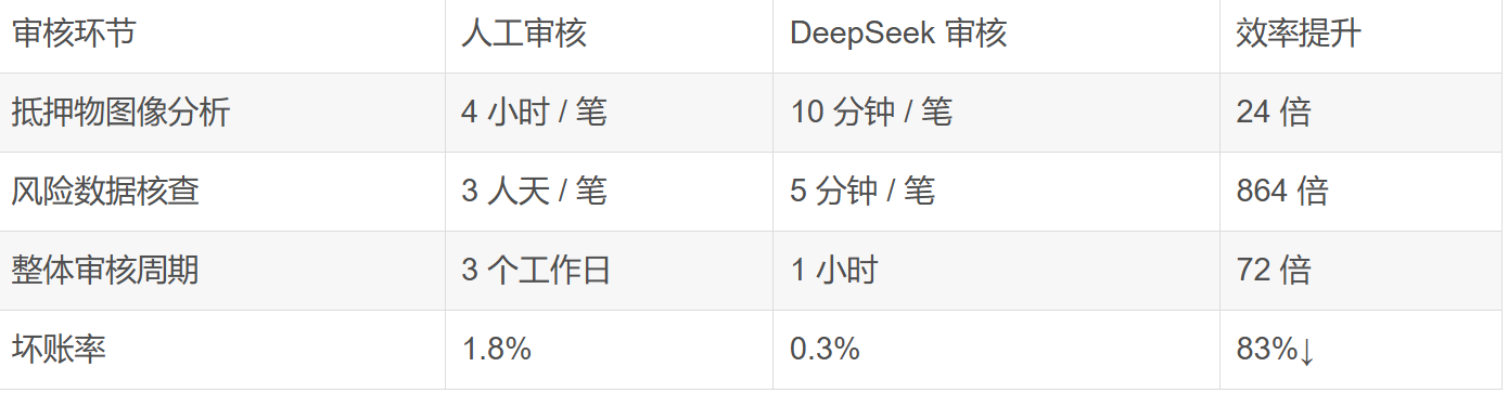 表 2:信贷审核效率对比表(来源:CSDN 案例)