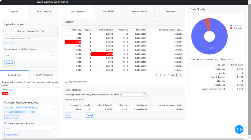 DataLens内部集成的机器学习工具(如RAHA)会根据你的反馈,迅速学会你的判断标准,然后自动把剩下的几万行数据里的同类错误全部揪出来。