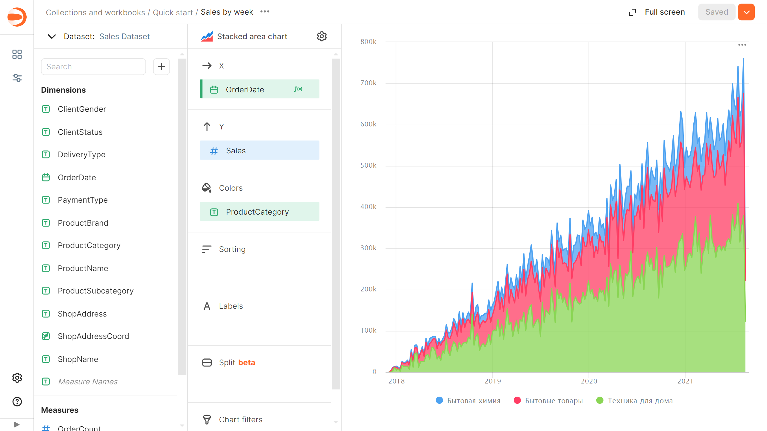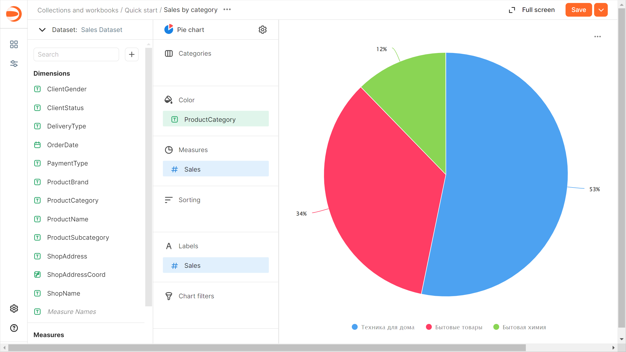 - 在打开的窗口中,输入新图表名称 Sales by category,然后点击 “保存”。