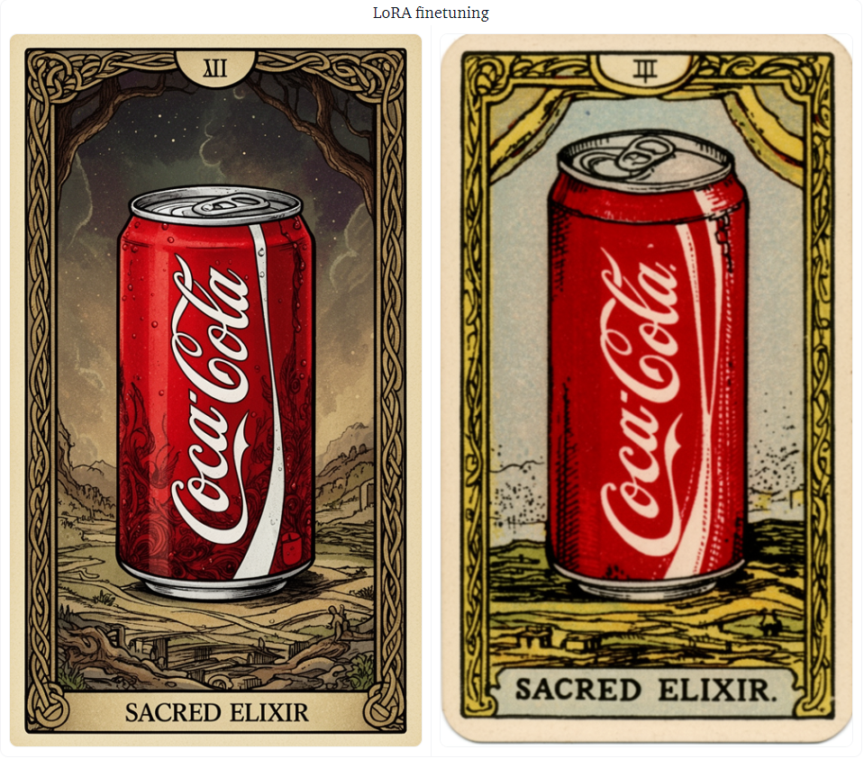 左图为预训练 FLUX.2 模型生成结果,右图为 LoRA 微调后生成结果。