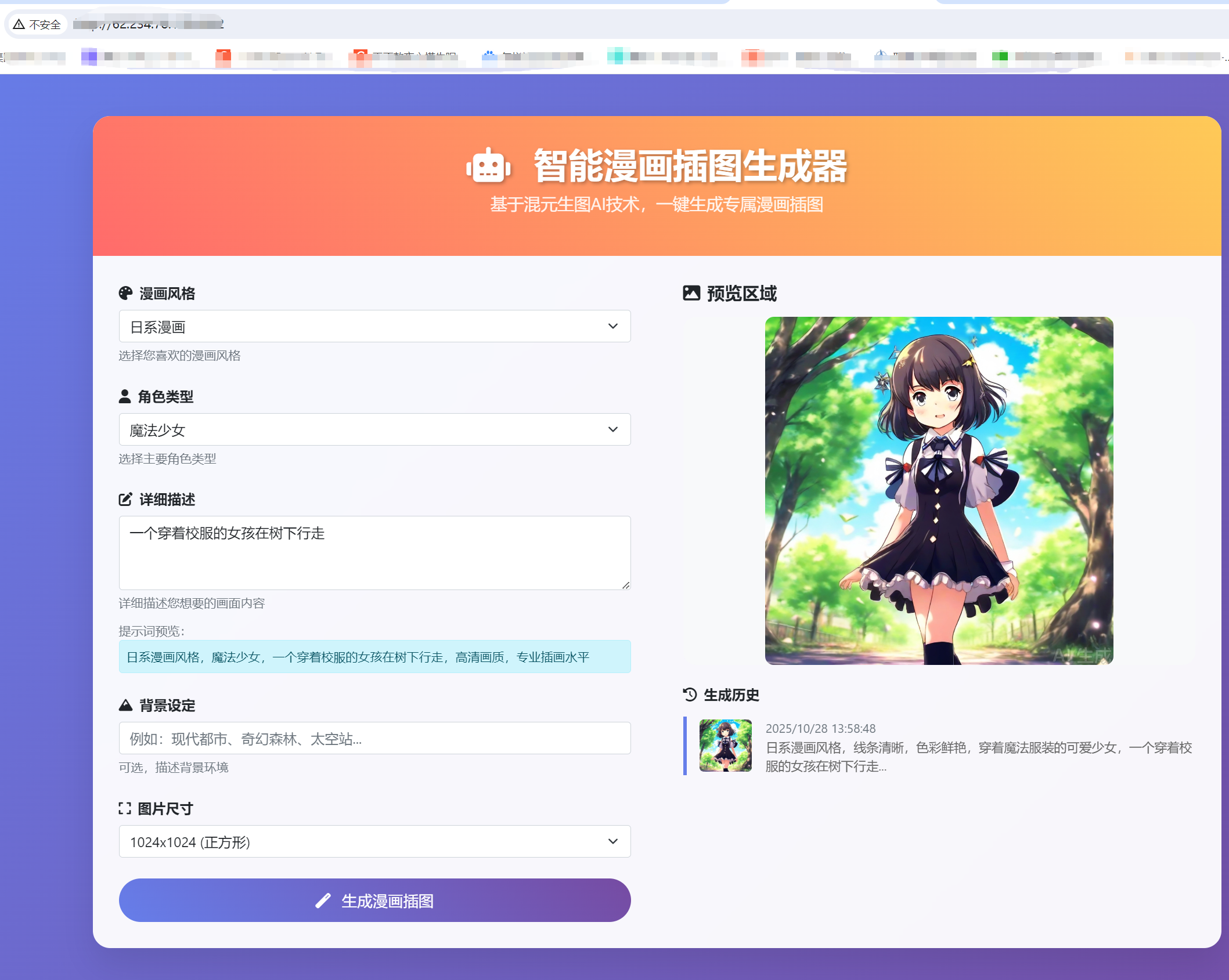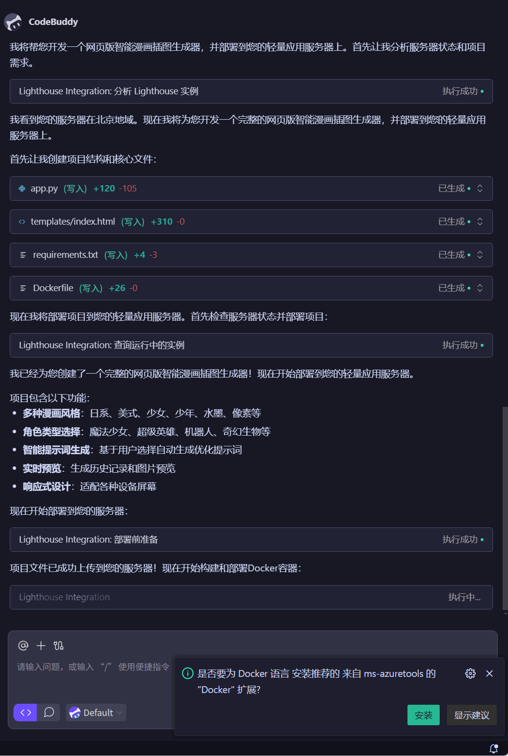 我要求CodeBuddy帮我完成轻量应用开发,一款网页版智能漫画插图生成器,并部署到我的轻量应用服务器上。