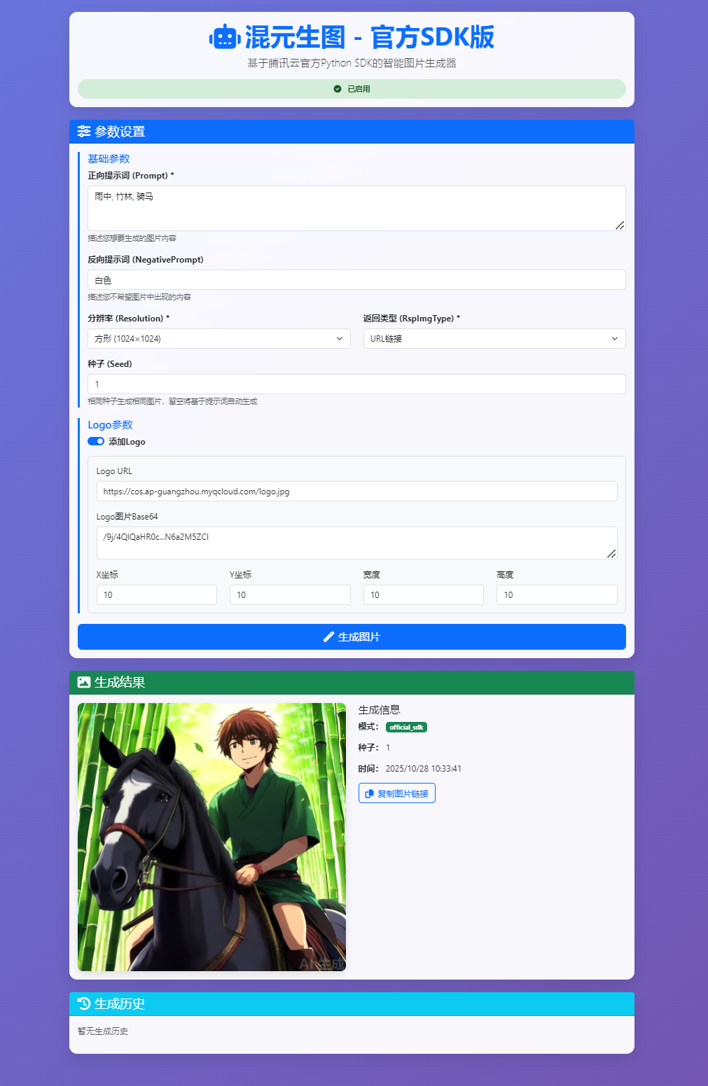 - 高级参数:种子值、Logo添加等专业选项