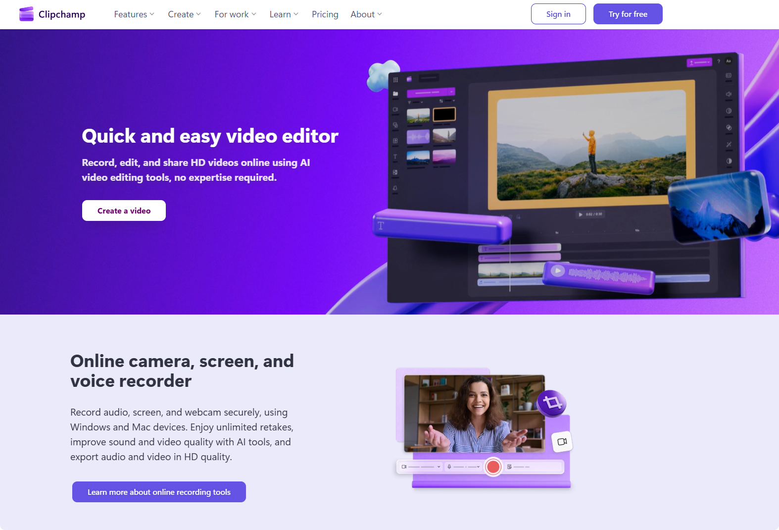 入口: Windows 11用户直接在搜索栏输入“Clipchamp”即可打开;Mac或Win10用户可以访问 clipchamp.com 使用网页版。