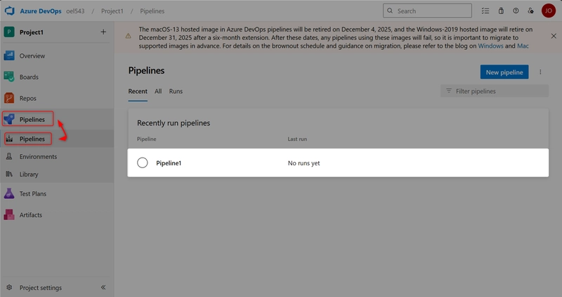 - 在左侧菜单中,选择 “管道(Pipelines)”。