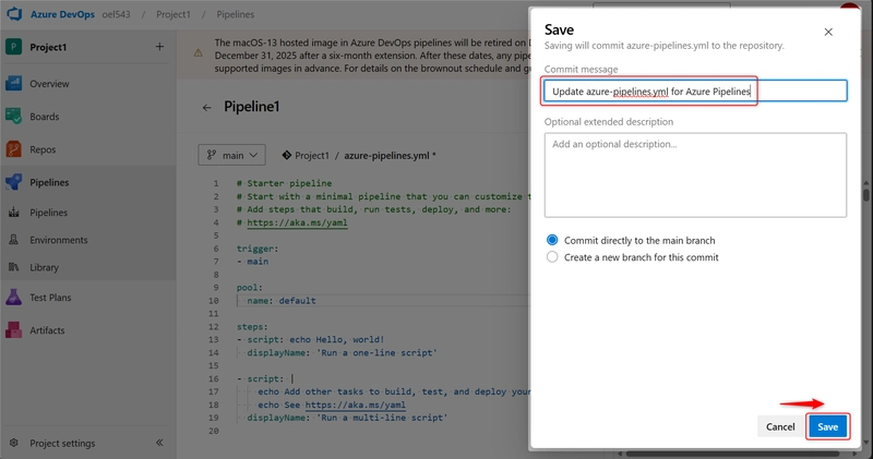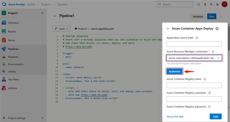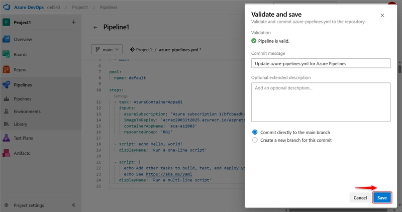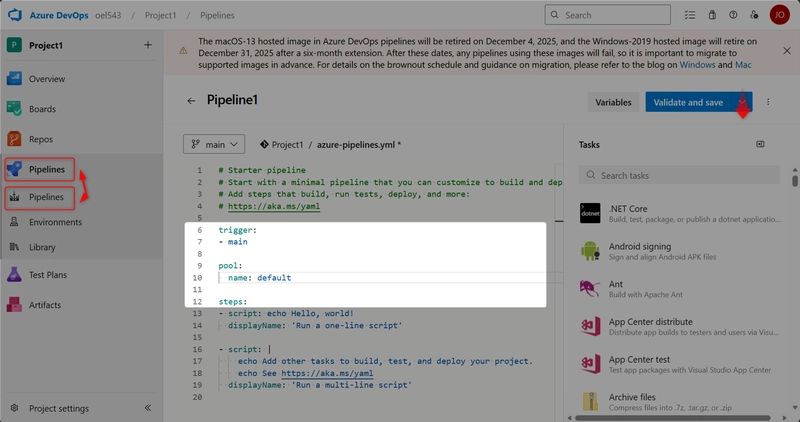 - 确保你已在 Azure DevOps 中打开 Pipeline1。