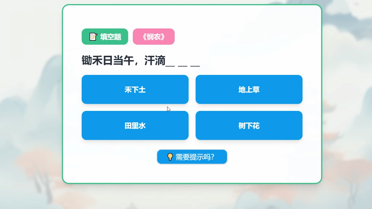 方案 2:古诗互动问答游戏——让诗句“答得出”