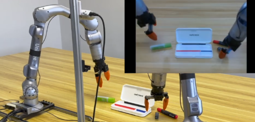 有了基础的物理理解能力后,模型会在宇树自家的下游任务数据集(如堆叠箱子、清理铅笔等)上,进行决策模式的专项训练。这个阶段,模型专注于学习如何预测未来交互,以便为动作生成提供有效的参考信息。