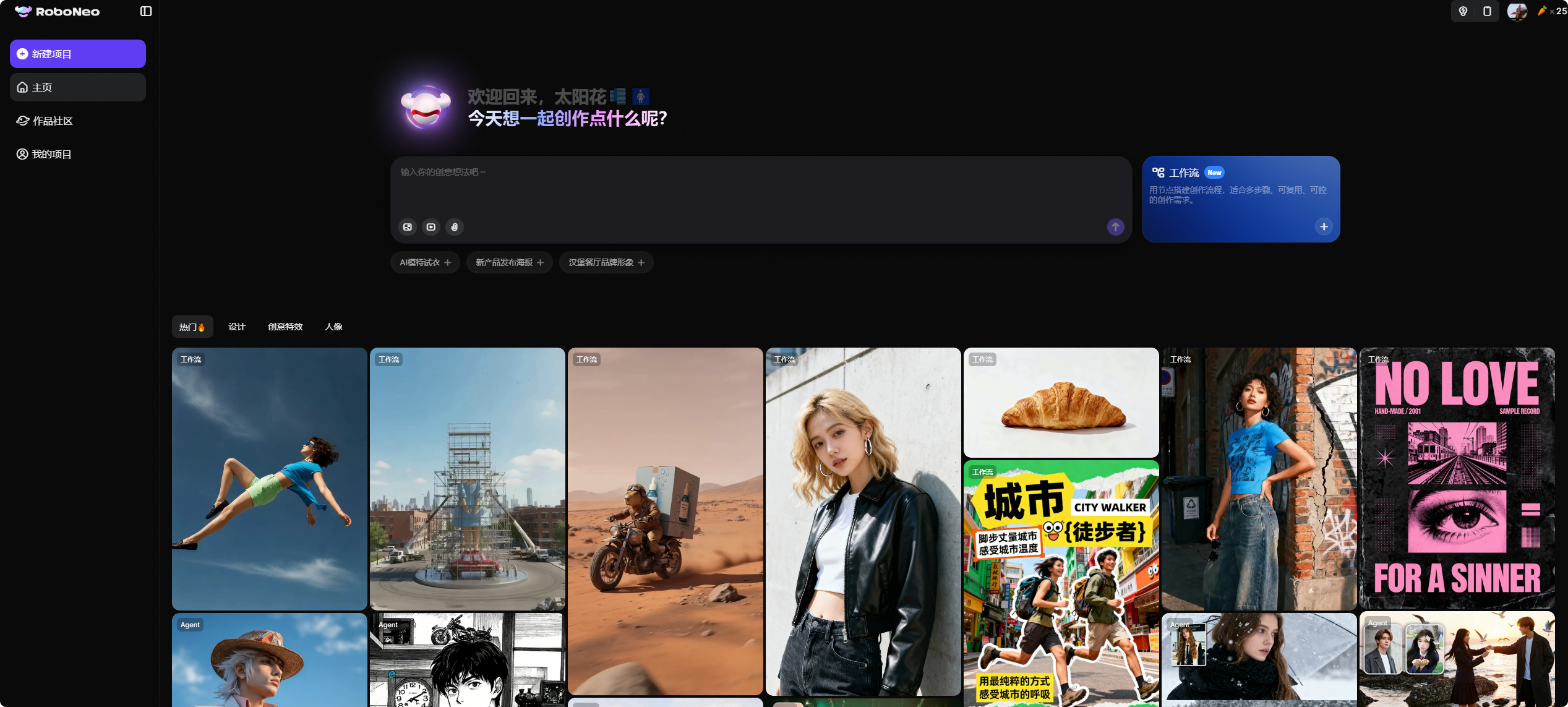 过去做一套Campaign(营销战役),你需要平面设计修图、插画师画主视觉、剪辑师做预热视频。现在呢?像RoboNeo这样的全能型选手,集图片编辑、设计生成、视频创作于一身。你不再是一个画图工,你是创意的指挥官,AI就是你手下最听话、不睡觉、不抱怨的执行团队。