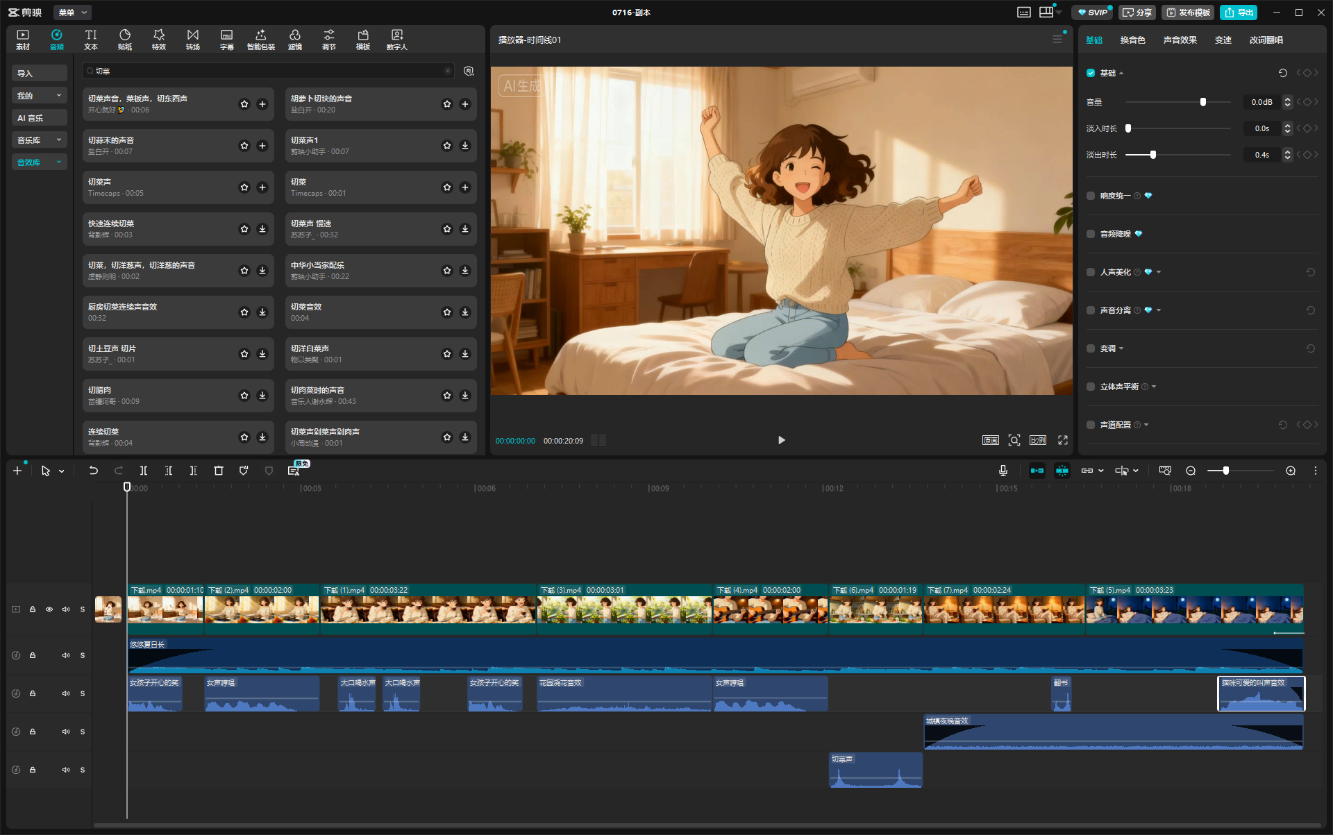 - 给分镜添加转场效果(如淡入淡出、模糊切换、卡点转场),匹配背景音乐节奏
