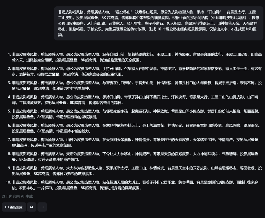 - 零门槛实现:无需专业动画制作能力和皮影手工技艺,靠 AI 工具就能完成,省时省力还能保证效果