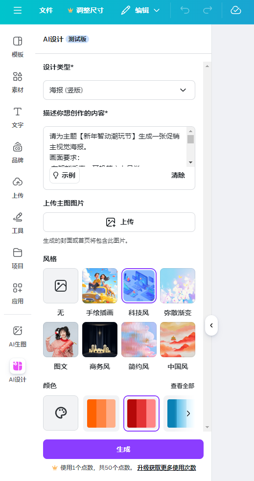 Canva 自带 AI 能图生图,你只需一段提示词。