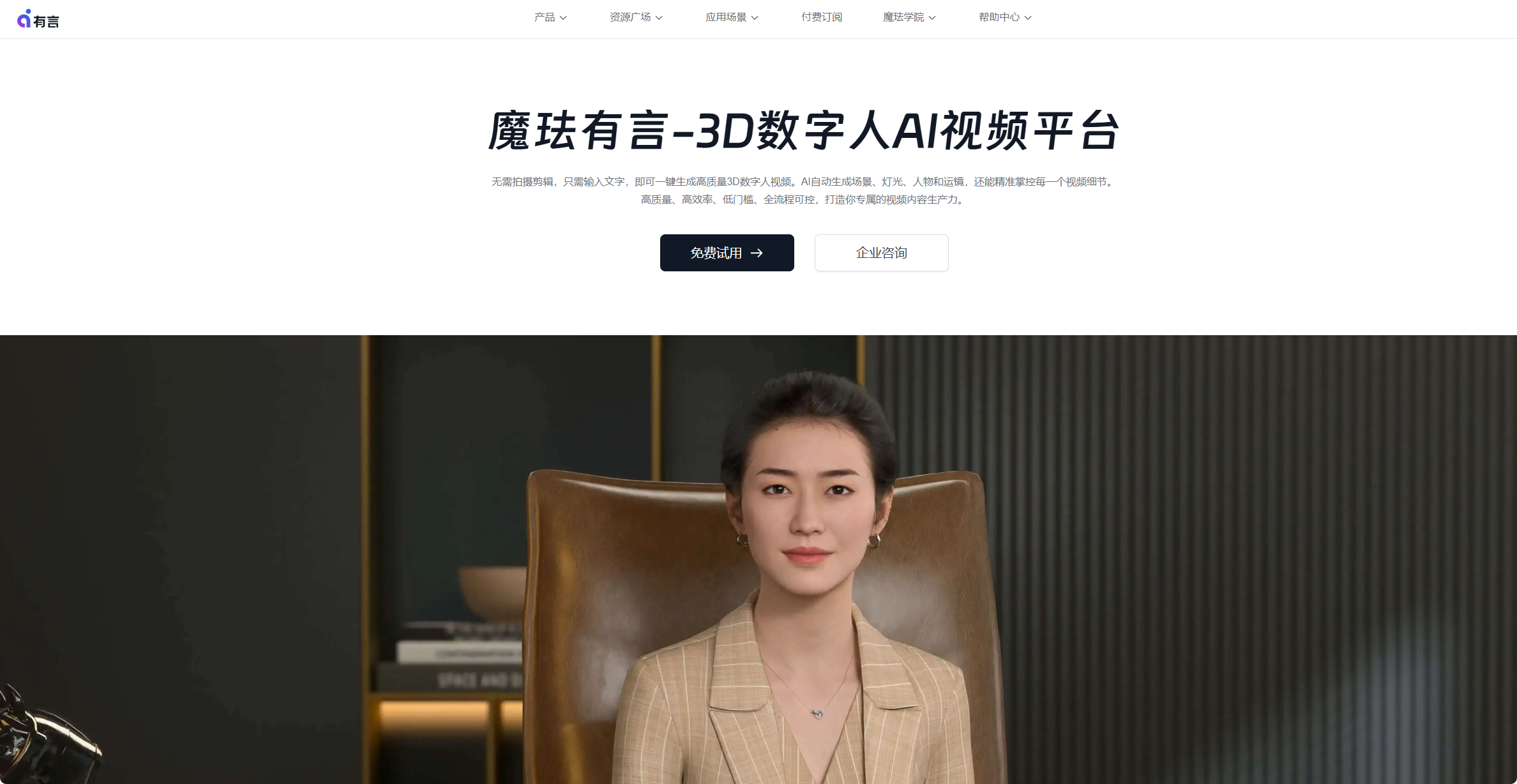 推荐理由:魔珐科技推出的3D数字人平台,无需真人拍摄!输入文本就能生成带场景、运镜和声音的完整视频,特别适合品牌推广、电商讲解、教育培训,专业感拉满。