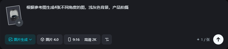 根据参考图生成4张不同角度的图,浅灰色背景,产品拍摄