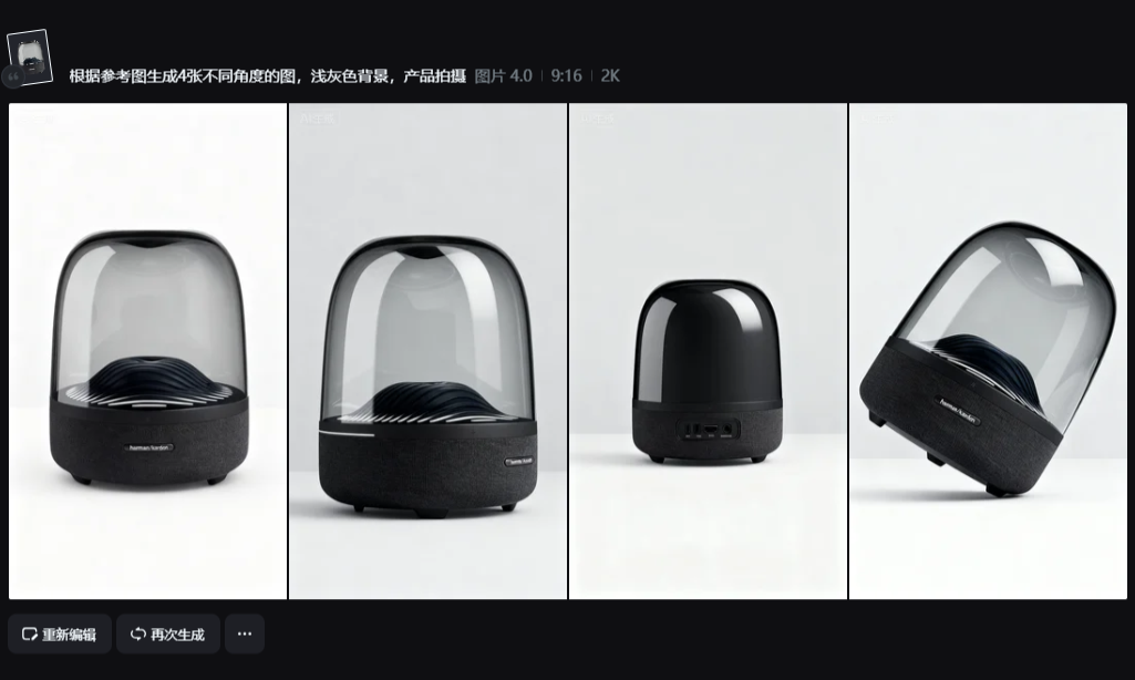 3.从生成的图片里挑选角度最贴合原图的,再稍作细节处理,就能得到一张音响产品图,这就是特效的首帧画面