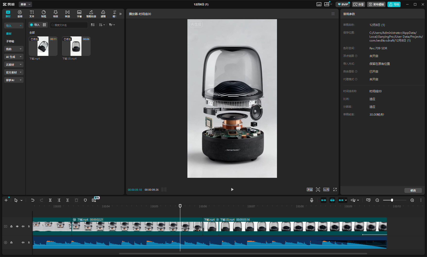 1.将生成的视频导入剪辑工具,根据需求调整播放速度,让拆解和复原的节奏更贴合预期