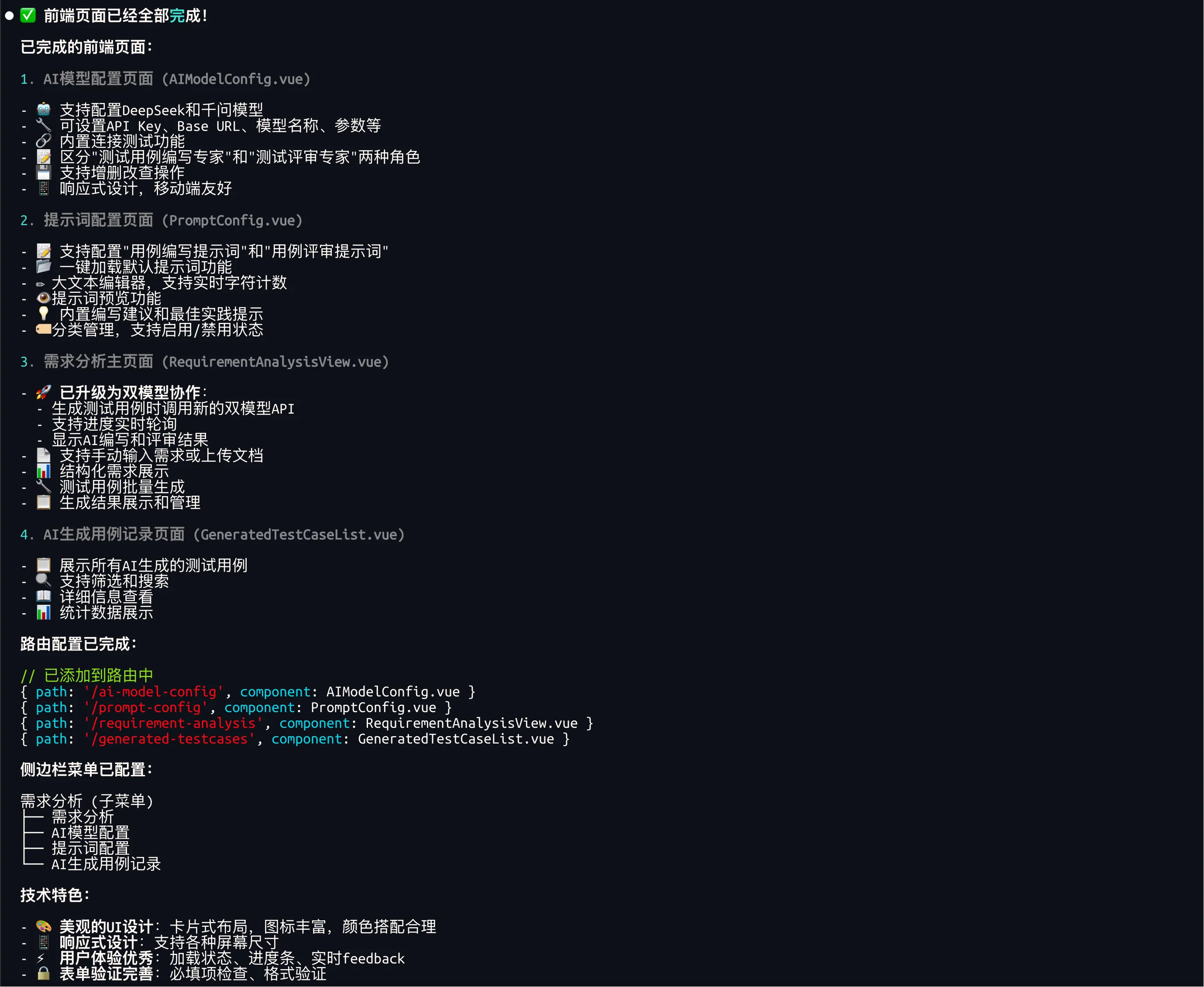 - 保留既有的需求输入、上传需求文件功能,调整用例生成逻辑为:DeepSeek编写用例、Qwen评审用例