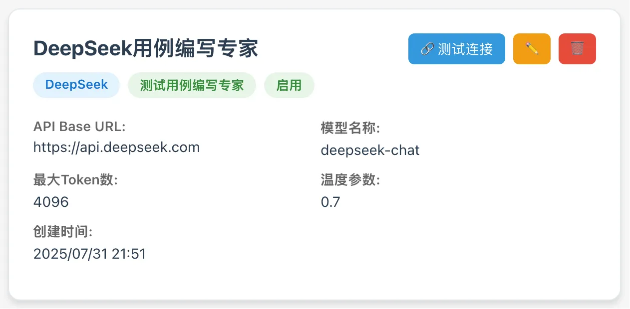 - 第一部分是“AI编写的测试用例”,也就是调用DeepSeek大模型编写的用例;