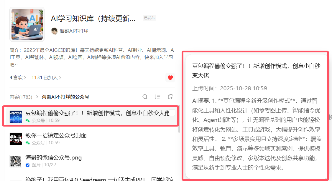 这是本次升级的王炸功能,彻底改变了我们和知识库的交互方式。