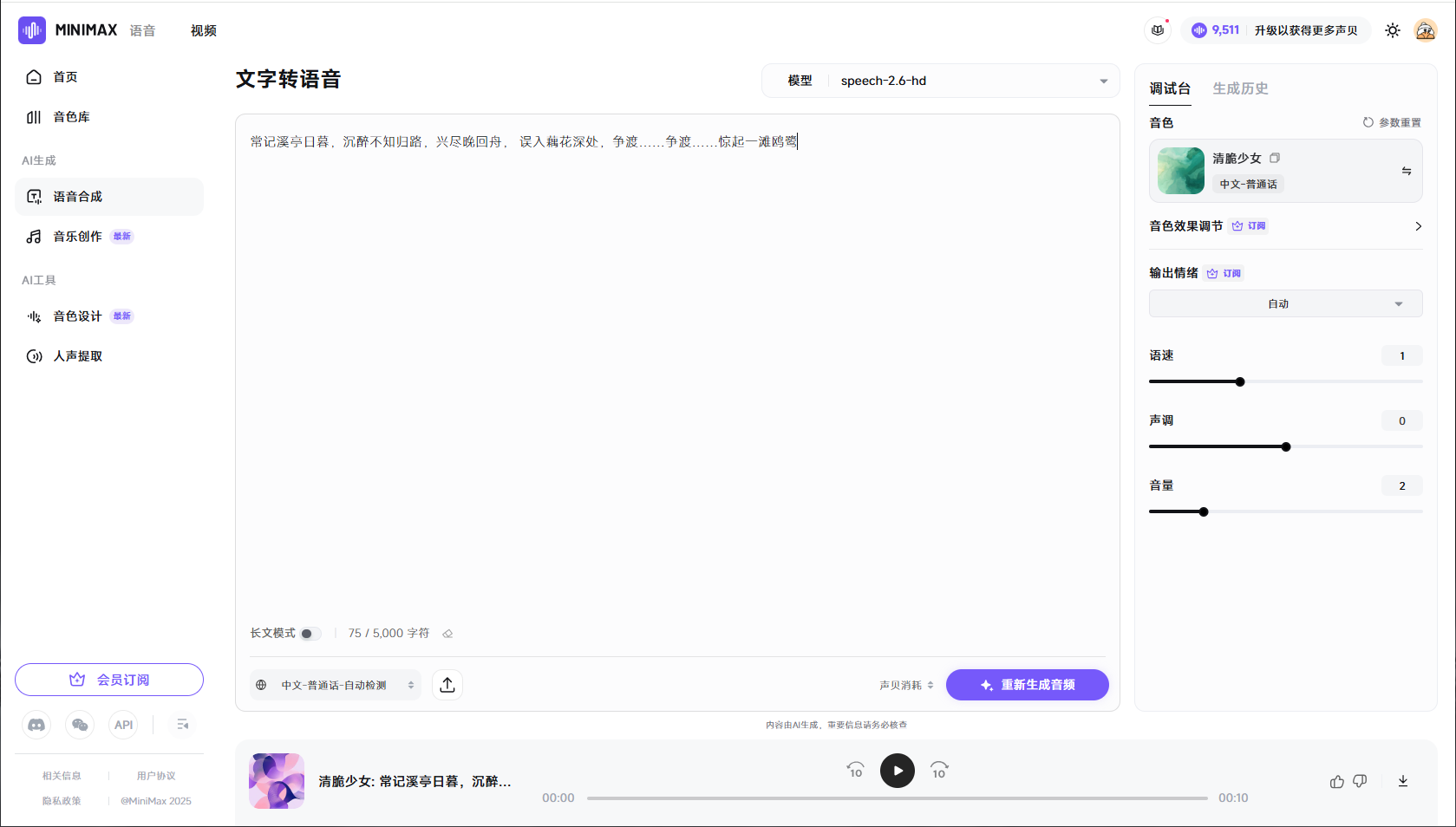 1.打开minimaxi配音网站:https://www.minimaxi.com/audio/text-to-speech