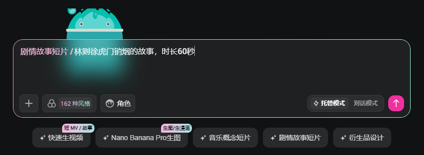 - 零门槛上手:不用写逐字脚本、不用抠历史素材、不用学分镜,AI 从策划到成片全搞定,小白闭眼冲;