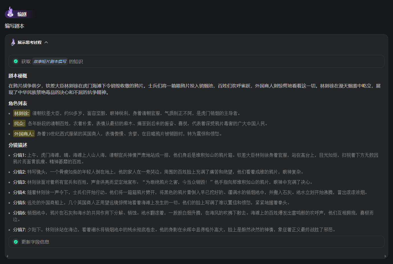 - 别乱改历史细节:比如林则徐的官职、销烟的方法,尽量尊重史实,AI 生成的脚本会参考正史,不用瞎调整~