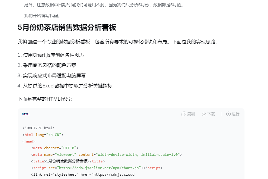 等待 DeepSeek 生成完成后,全选并复制系统输出的所有 HTML 代码(别漏任何一行,否则会影响运行)。