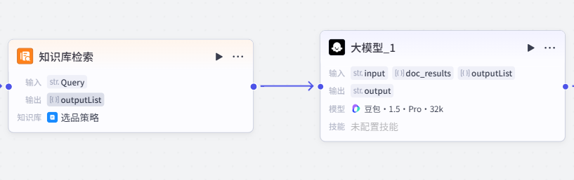 - 这是最关键的一步。在“知识库”节点后,再连接一个 “大语言模型” 节点。
