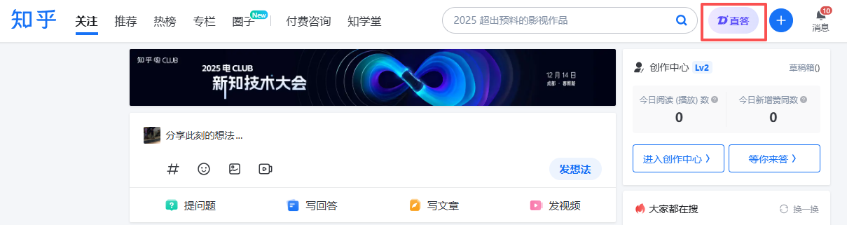 - 怎么找:在首页顶部,或者你的关注页,找到一个叫 “直答” 的入口(旁边一般有AI标识)。点进去就行。