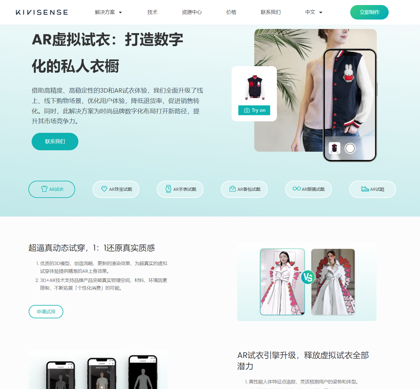 目前,行业中已经有平台在做这类尝试。例如 Kivisense(https://tryon.kivisense.com/blog/zh/ar-solution-clothes-cn/),其 AR 技术已经覆盖: