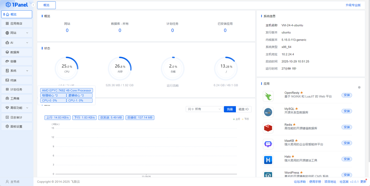 它将复杂的服务器运维工作,转化为简单的点击操作,是现代开发者和运维人员提升效率、降低门槛的理想工具。无论是搭建个人博客、部署企业官网,还是管理数据库和容器,1Panel 都能让你事半功倍