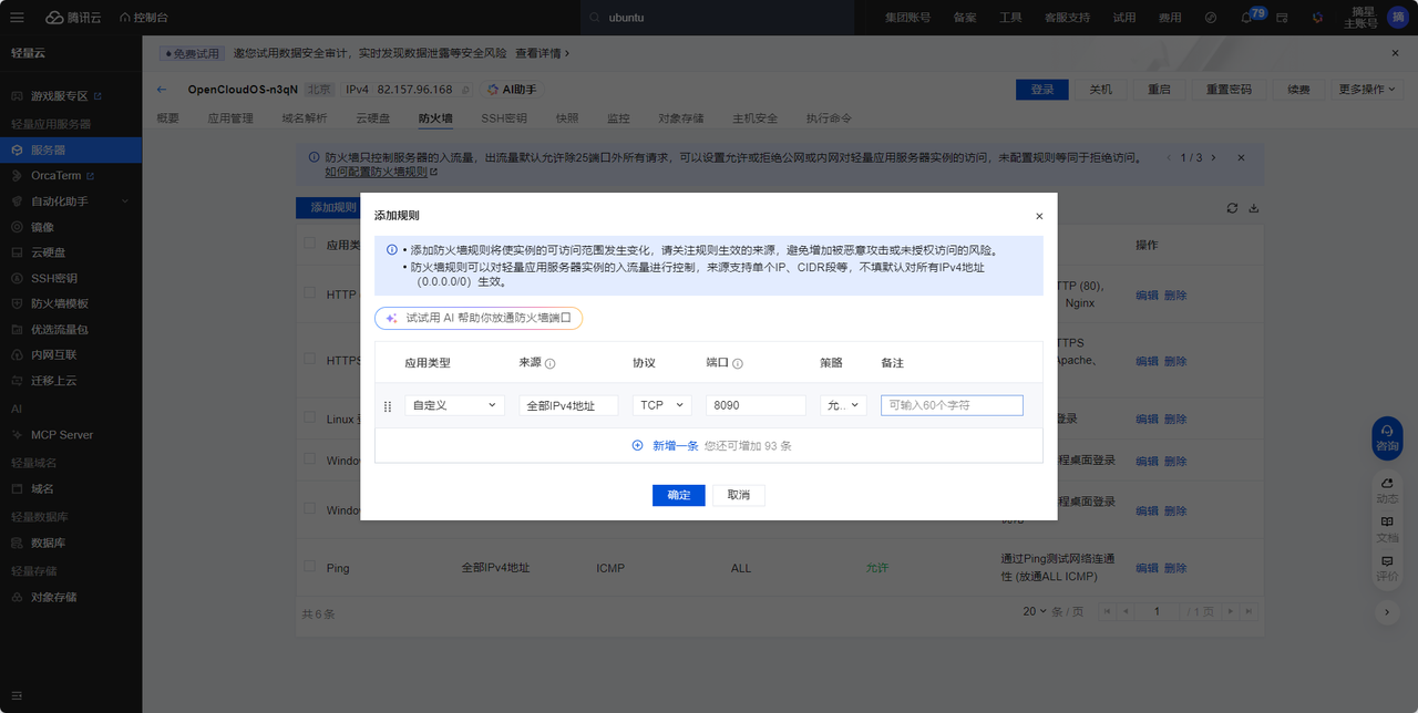 所以这里需要新增一个放行8090端口的规则才能正常访问