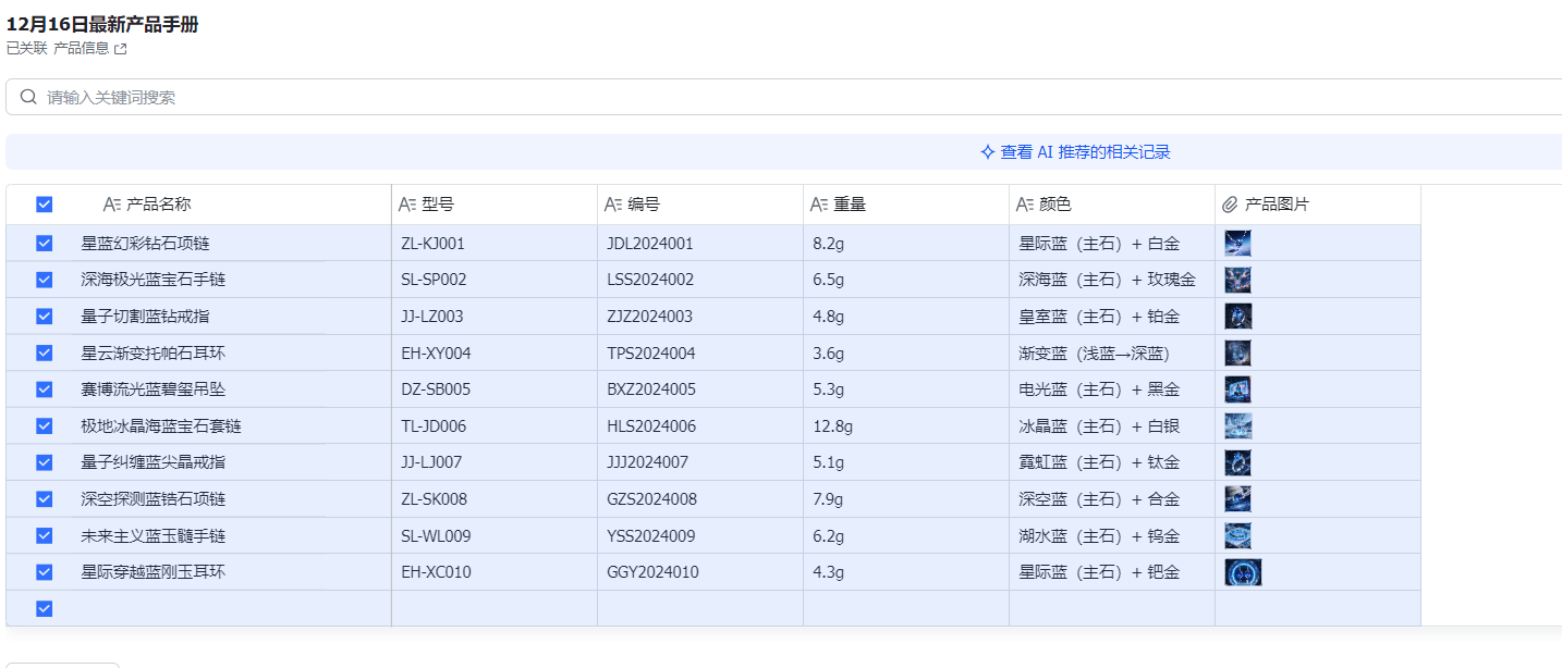 将每一条记录与对应的珠宝产品关联,生成完整的产品手册。