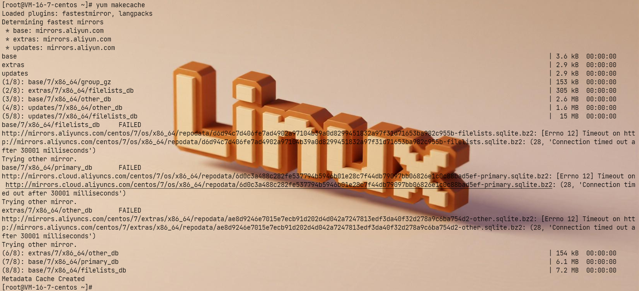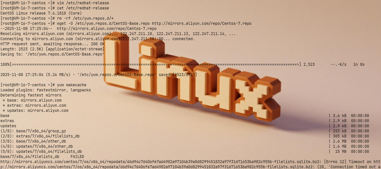 删除系统自带 yum 源,下载阿里云 yum 源,并且更新缓存