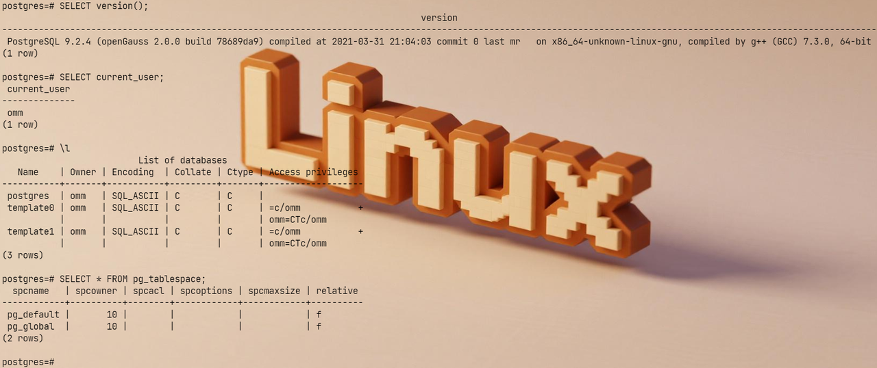 要验证 openGauss 数据库是否安装成功,首先需要确认数据库服务已经正常启动。在此基础上,可以通过本地连接命令 gsql -d postgres -p 26000 进行测试,其中 -d postgres 表示连接默认的初始数据库 postgres,而 -p 参数用于指定数据库监听的端口号。该端口号并非固定值,而是来源于安装时所用的集群配置文件(例如 cluster_config_template.xml)中 <PARAM name="dataPortBase" value="26000" /> 所定义的 dataPortBase 值;在单节点部署场景下,通常直接使用该基础端口进行连接。若执行该命令后成功进入 gsql 交互式命令行界面(提示符如 postgres=#),说明客户端能够正常与数据库实例通信,数据库进程运行稳定,权限、环境变量(如 PGHOST)及网络(或 Unix 域套接字)配置均正确无误,至此可判定数据库安装与初始化已顺利完成,系统具备基本可用性。