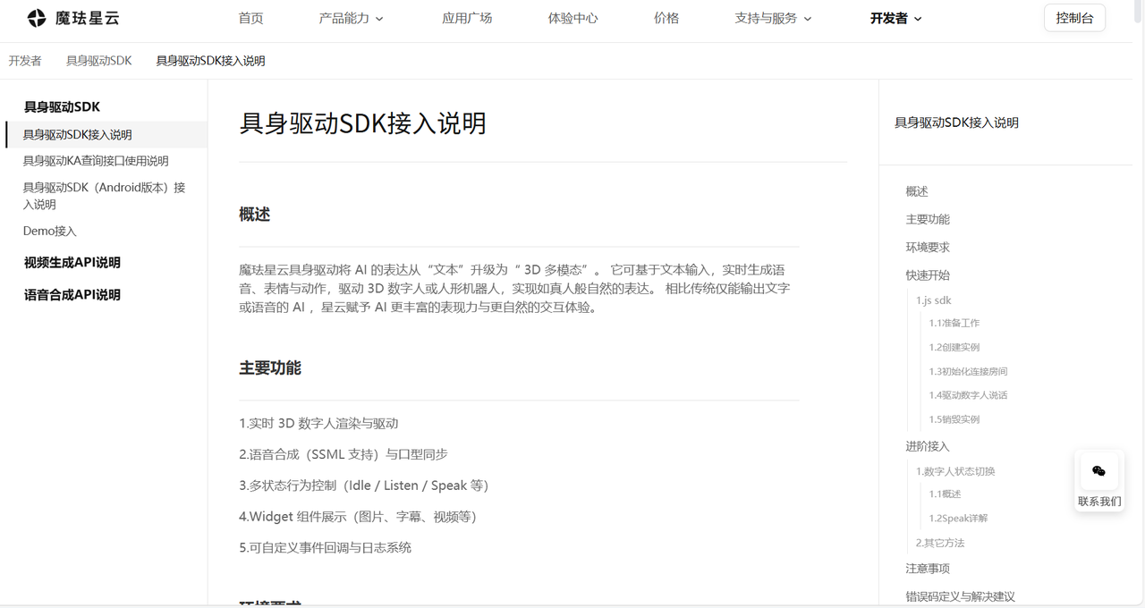 魔珐星云提供了一整套 SDK,涵盖了构建具身智能应用所需的所有能力: