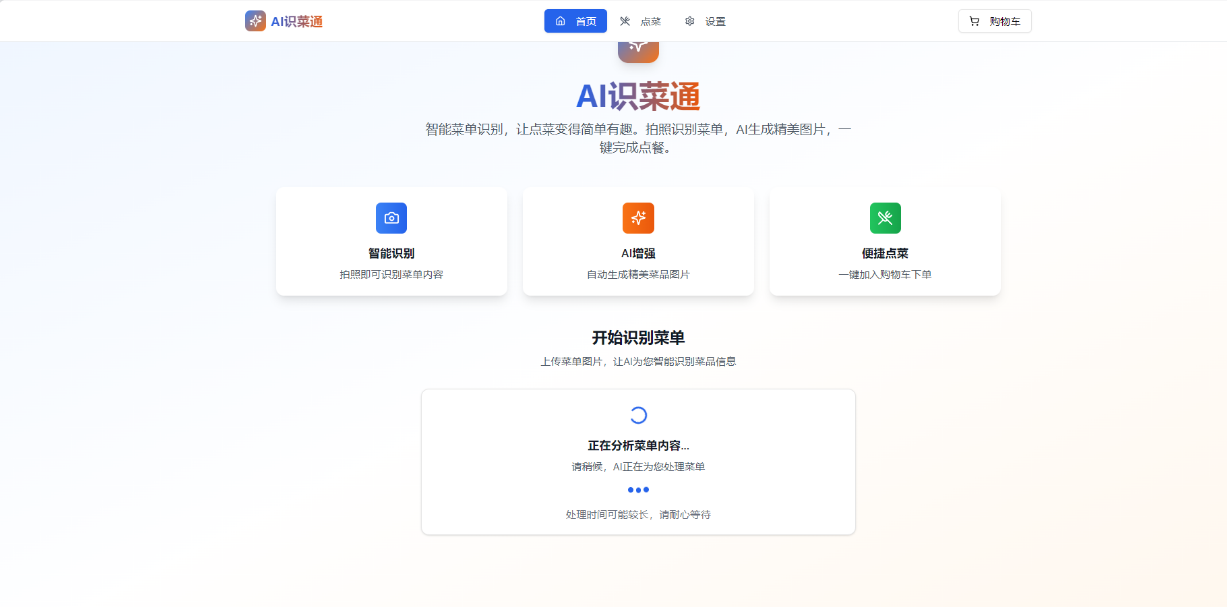 上传图片之后项目就会调用豆包大模型进行分析,整体的时间根据菜单内容的多少会有些出入,静静等待几分钟就好: