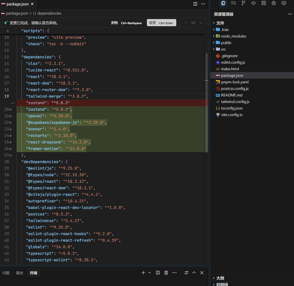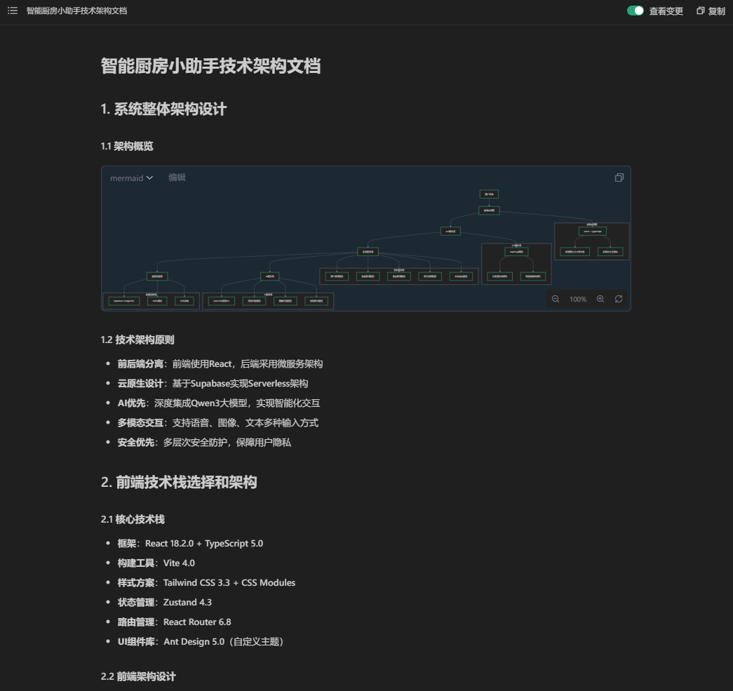 TRAE 2.0版本的核心创新SOLO模式基于"Context Engineering"理念设计,让用户只需通过自然语言描述需求,系统便会自动进行需求感知、任务拆解、代码生成与测试验证。在"AI识菜通"项目中,开发者仅需输入详细需求描述,TRAE便自动生成完整应用,包含需求文档、架构设计、代码实现与测试,将开发效率提升至全新高度。
